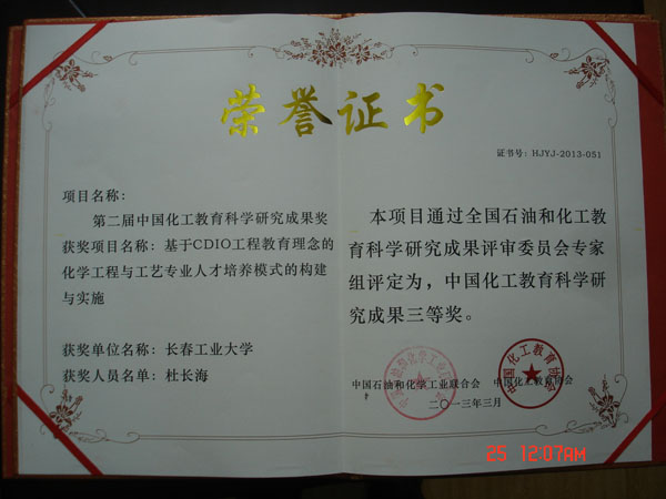 据悉,中国化工教育科学研究成果奖是中国石油和化学工业联合会、中国化工教育协会联合举办的,是全国石油化工领域重要的行业奖项。该奖项的评选工作是为了提高全国化工院校教学质量和教育科学研究水平,展示近两年来在科学发展观引领下化工教育领域取得的优秀教育科学研究成果,总结化工各类教育的教学改革的成功经验,交流和探索院校内涵发展、专业建设、实践创新的新思路与新途径。