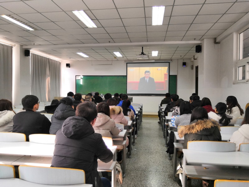 学院党委书记刘喜明与学生党支部和环境党支部一起观看大会直播
