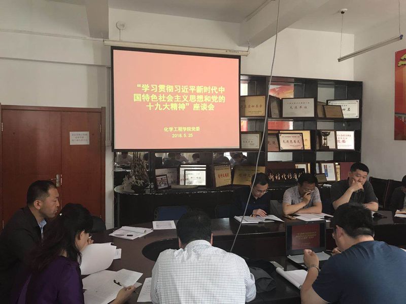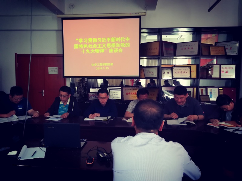 党委在化工楼四楼会议室召开了“学习、贯彻习近平新时代中国特色社会主义思想和党的十九大精神”座谈会,学院党政领导、系党支部书记、系主任参加了座谈会,会议由学院党委书记刘喜明主持。