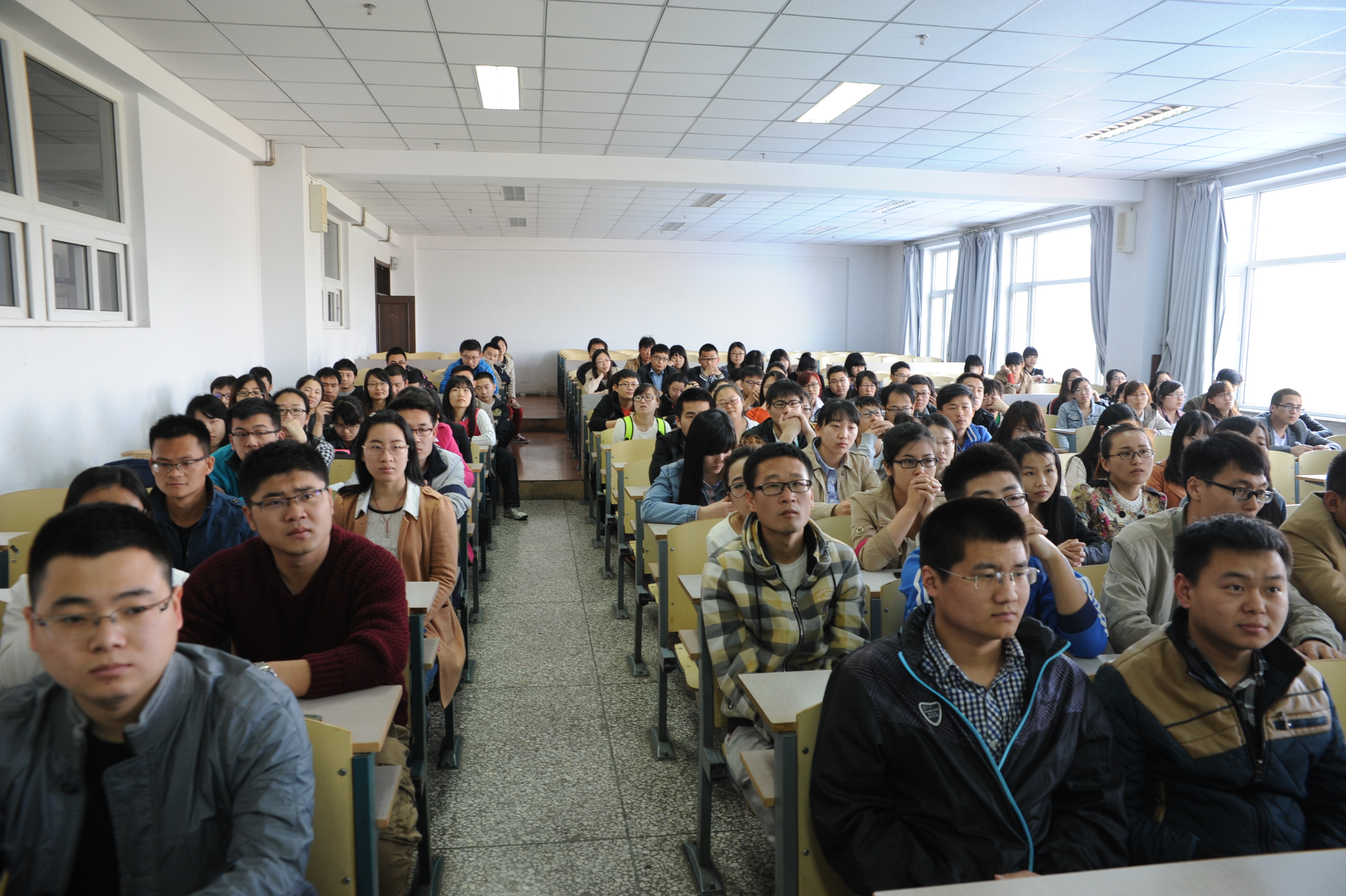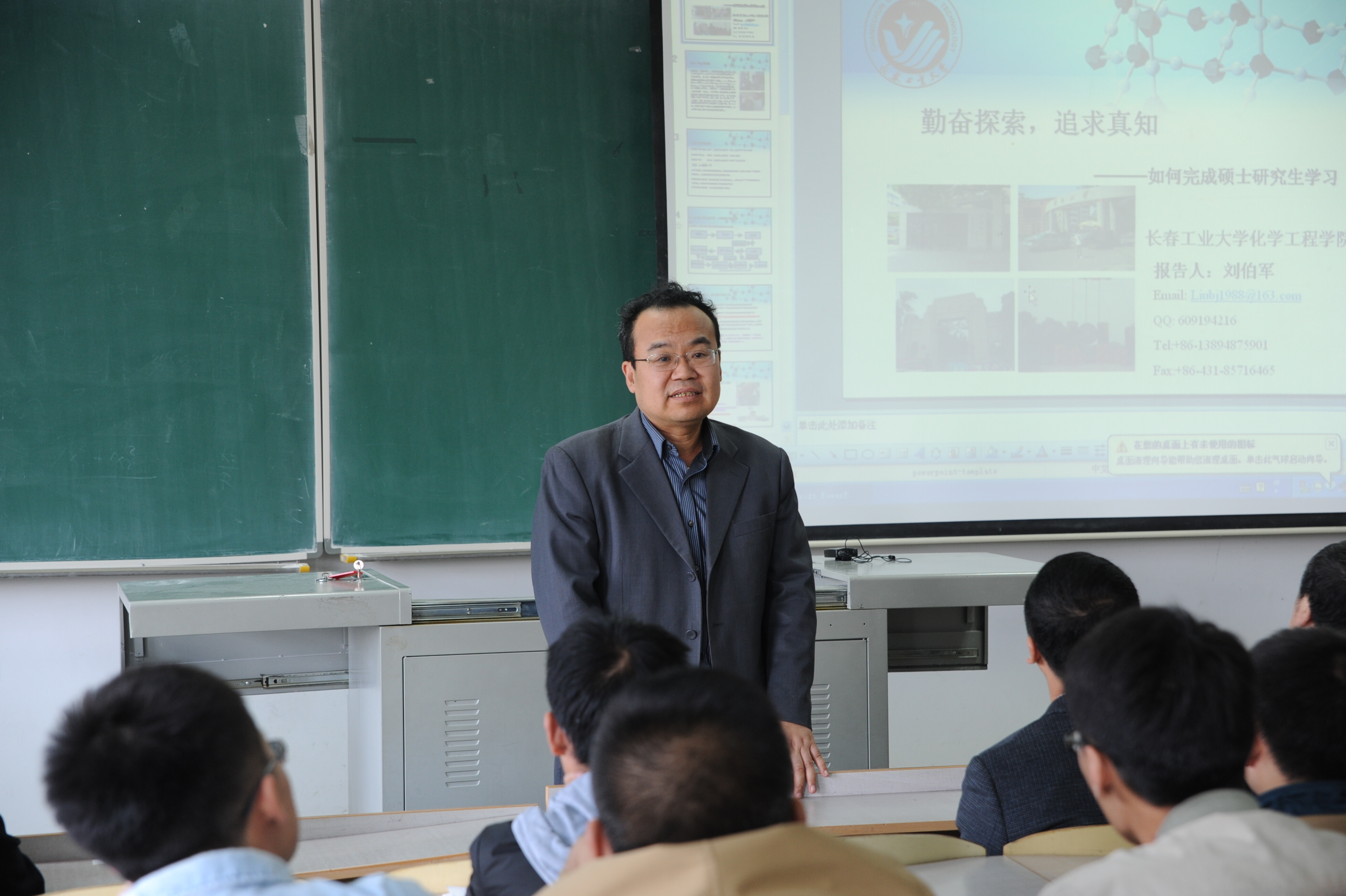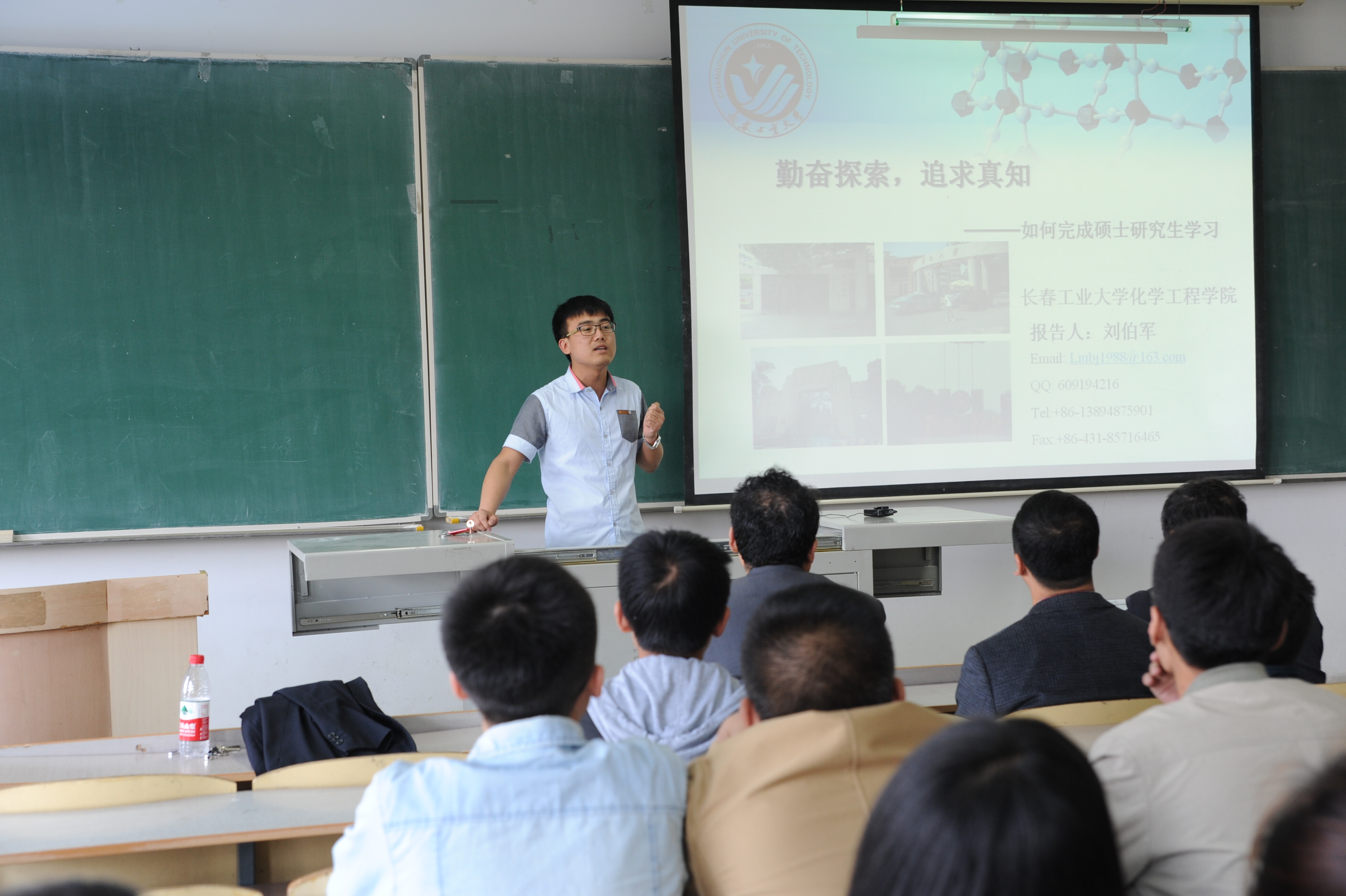 刘喜明书记、张龙院长、研究生院秦喜文副院长、化工学院研一、研二全体同学及其他学院的部分研究生同学参加了报告会,报告会由张龙院长主持。
