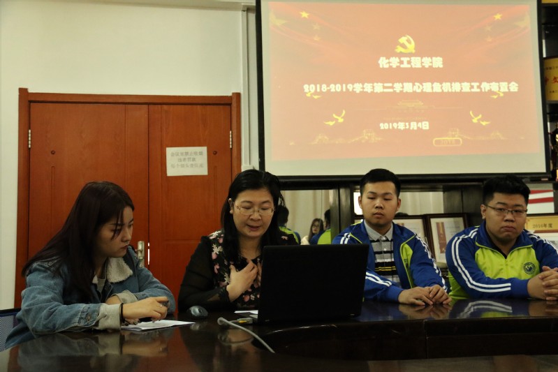 2018-2019学年第二学期心理危机排查工作布置会于2019年3月4日在化工楼会议室召开。会议由学院心理辅导员肖芳主持,各班心理委员参加了会议。