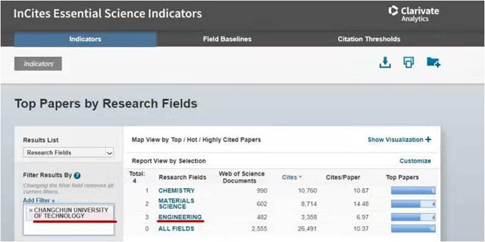 我校化学、材料科学、工程学3个学科进入ESI全球排名前1%