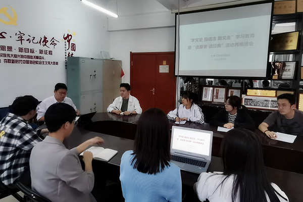 新闻网讯(通讯员 刘雨婷)今年是党的百年华诞,为进一步增强青年的责任感和使命感,落实学校“学党史 强信念 跟党走”学习教育和“读原著 读经典”活动。学院团委13日下午在南湖校区化工楼会议室开展学习教育活动再推荐会。学院团学组织主要学生干部,理论社团负责人参加了会议。会议由学院团委书记杨楠主持。