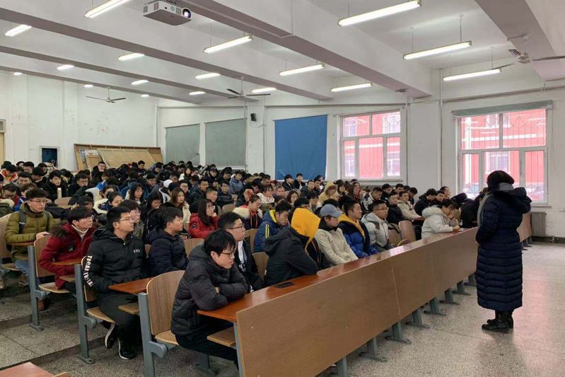 2017级于12月13日在南湖校区综合一开展四六级、考研、期末考风考纪年级会,会议由2017级辅导员肖芳主持。