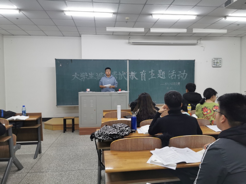 在2019级年级会上,李秀绒老师要求同学们牢记“诚信考试,拒绝作弊”,严格遵守考试制度,拒绝作弊行为,并结合学生手册相关内容开展警示教育。同时,李老师也深入了解同学们对各科的期末复习情况,对上一阶段无机化学测试成绩进行了总结。2017级、2018级也通过班团支部会、学生干部会等形式组织学生学习了刑法修正案第九条和学生手册关于考试纪律的相关条款,学院微信公众平台也推出了关于四六级考试及期末考试的纪律要求推文。