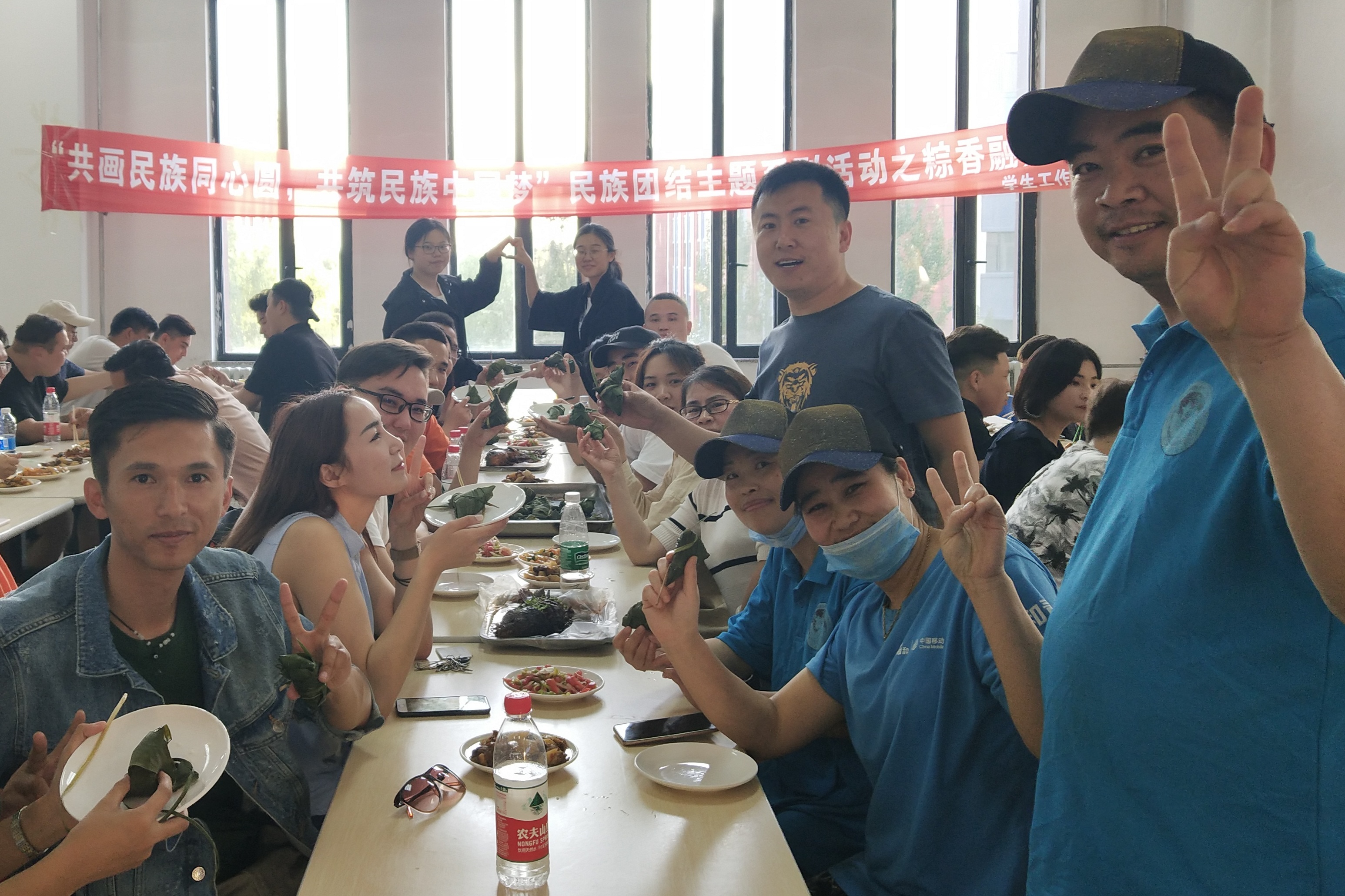 活动在同学们热烈的掌声中拉开帷幕,别克老师带领少数民族学生代表热依汗、阿依尼尕尔、古丽克孜、娜扎凯提为到场的同学们制作了民族特色美食“手抓饭”。恰逢端午节来临,程晓印老师带领年级各班的团支部书记为大家现场制作了粽子,各民族同学也互赠了礼物。丁虹老师在活动中讲到:“希望各族同学能健康快乐的度过大学生活,民族的团结和睦是祖国兴旺发达的重要条件,中国的历史就是各民族团结互助、共同进步的历史,让我们一起为民族共同繁荣努力。”最后,活动在全体同学共同合唱的《爱我中华》歌声中圆满结束。