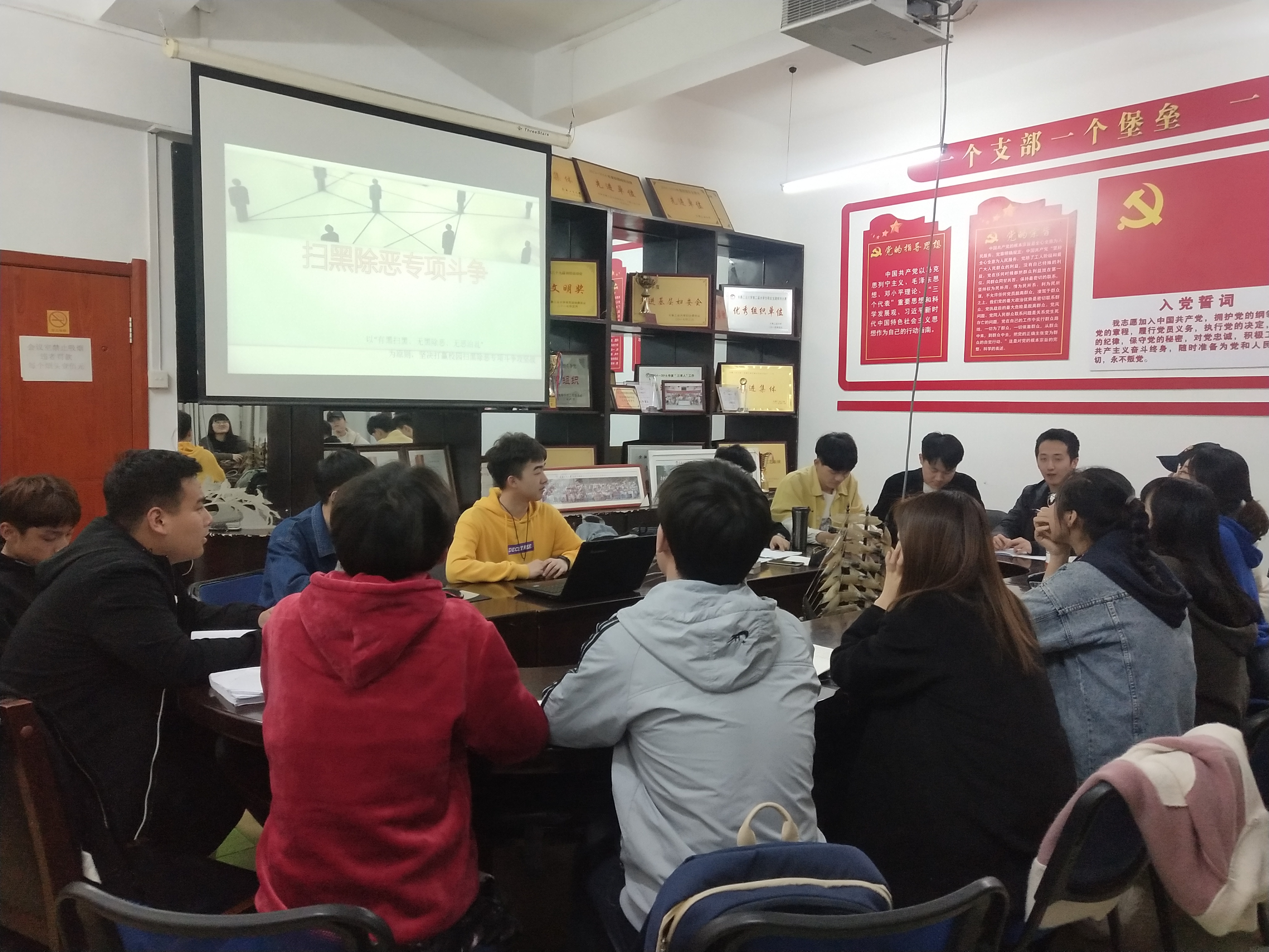 团委于18日在化工楼会议室开展“扫黑除恶专项斗争”学习会,会议由学院团委副书记王俊皓主持,学院各支部委员参加了此次会议。