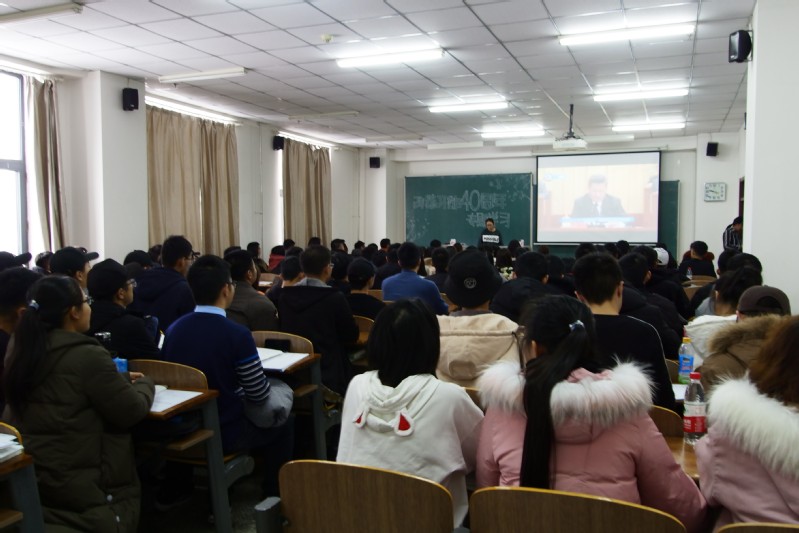 分团校20日在北湖校区主楼1524教室组织学习习近平总书记在庆祝改革开放40周年大会上的重要讲话精神,学院2018级同学参加了本次学习。