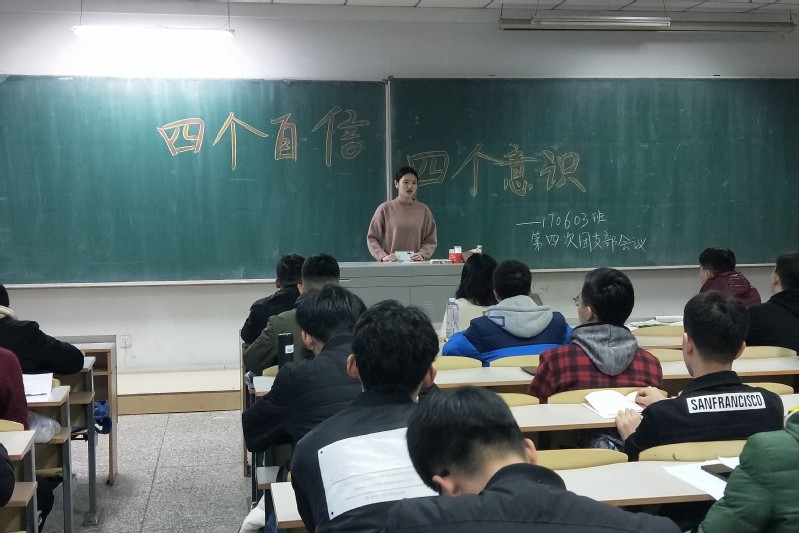 新闻网讯(通讯员宋佳音 郭一凡)为认真学习党的十九大精神,深入贯彻落实习近平新时代中国特色社会主义思想,在理论学习中学习筑梦。170603班团支部21日在科研楼2301教室举行了以学习“四个意识、四个自信”为主题的团支部会。支部会议由团支部书记刘香池主持,组织委员常新代负责记录。