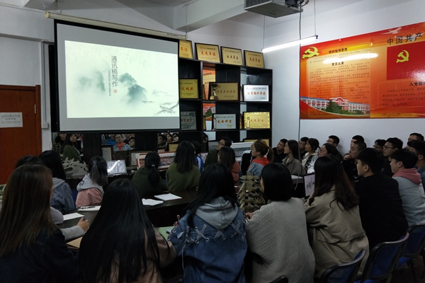 培训会上,团委张旭航首先从新闻写作的基本要求和写作格式切入,让同学们大致了解一篇通讯稿所需的必要元素。随后又分别介绍了通讯稿的基本分类、通讯稿的写作程序、不同种类通讯稿的写作方法及写作中易出现的错误。在讲解写作技巧过程中,张旭航结合自身工作经历,将不同种类的通讯稿进行对比与分析,通过理论和实践相结合的方式,加深了同学们对通讯稿写作的认识。使同学们清楚地了解了自身通讯稿的问题所在。之后,新媒体中心鲁雍胜详细讲解了会议照片和活动照片的拍摄方法以及简单的ps技巧,让大家明白了如何从各个方面优化图片以达到宣传目的。同时根据团学联组织提交的活动照片进行了综合点评。