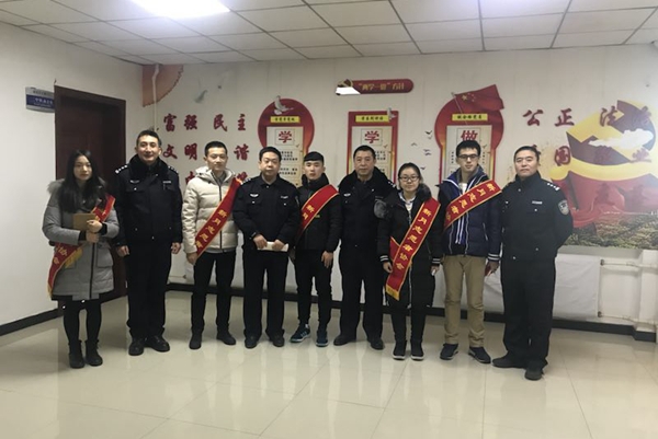 新月志愿者协会团支部的部分同学来到长春交警朝阳大队与大队党员共同学习十九大精神。