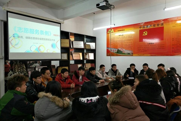 在国际志愿者日当天举行学习贯彻《志愿服务条例》暨新月志愿者协会、绿荫环保志愿者协会团支部成立大会。学院团委主要学生干部,志愿者协会主要负责人参加了学习和成立大会。