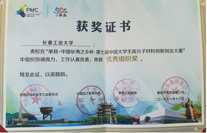 (通讯员:郐羽)10月19日,由中国石油和化学工业联合会、中国化工教育协会、山东单县县委县政府、橡胶谷集团主办的第七届中国大学生高分子材料创新创业大赛决赛在山东单县落下帷幕,我校高分子系参赛团队在本次大赛中斩获佳绩,任秀艳、高光辉老师指导的《碱基增粘水凝胶的制备与性能研究》获大赛一等奖1项,刘伯军老师指导的《耐黄变ABS树脂的制备技术与OTP运营模式》以及任亮老师指导的《新型杂化合金材料的产业化制备方案》的两项作品获得二等奖,同时高分子系在赛事举办过程中积极组织与协调获得大赛优秀组织奖。