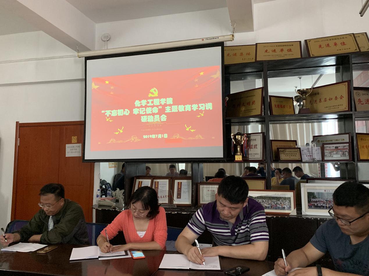 在化工楼8416召开了“不忘初心、牢记使命”主题教育学习调研动员会,学院全体科级以上干部参加了会议,会议由学院党委书记刘喜明主持。