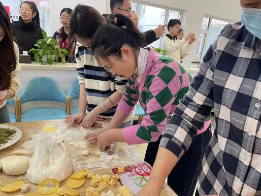 下午3时,充满趣味性的包饺子比赛正式拉开帷幕,来自各系各专业的5支参赛队伍进行角逐。各参赛队须在规定时间5分钟内完成饺子制作,裁判组则根据各组包的饺子数量质量、团队协作等标准进行现场综合打分。
