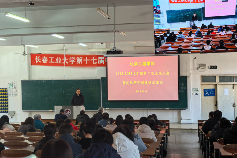 在综合一教室召开学院教职工全体会议暨院级研究所建设汇报会,会议由副院长李贞玉主持。