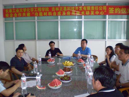 校科研处郭晓立处长,化工学院张龙院长,夏天民书记,王承学副院长,长春市科技局高新处张家才处长,长春高新技术开发区石威副主任,高新技术开发区科技局肖群局长等相关领导出席了签约仪式。
