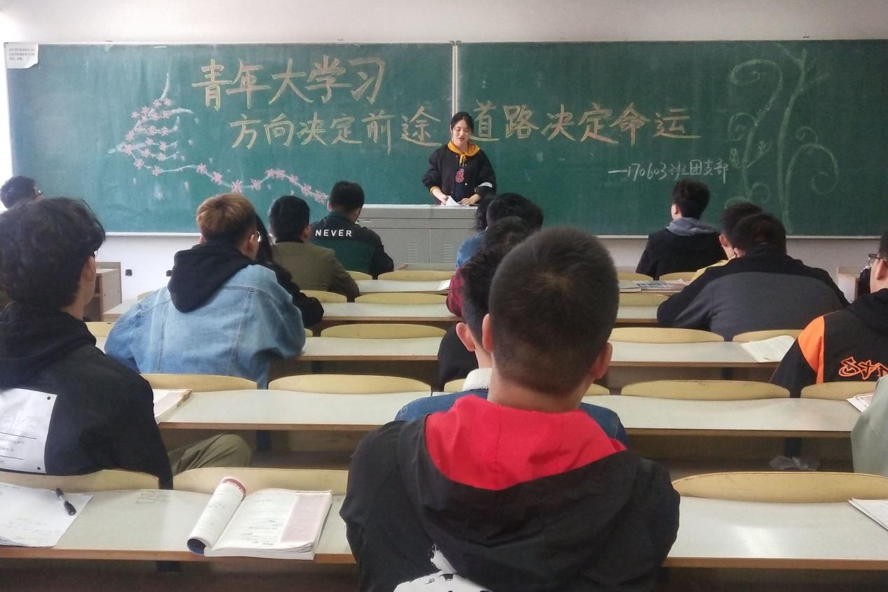 170603班团支部15日在南湖校区科研楼2301教室举行“青年大学习——方向决定前途,道路决定命运”主题团支部会。团支部会由170603班团支部书记刘香池主持,组织委员常新代负责记录。